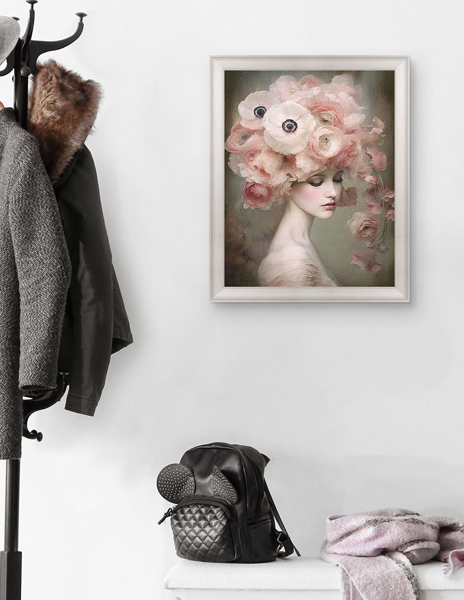 Floral Rubor 9 (Blush Floral 9) despliega pétalos en tonos rosados sobre un fondo neutro, celebrando la suavidad y ternura de la flor en un gesto elegante que evoca la sensibilidad humana.