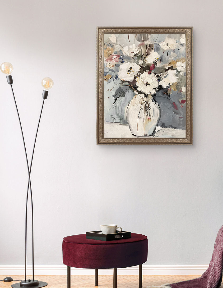 Sin ataduras se integra con delicadeza en un salón, un dormitorio o un estudio, aportando una atmósfera de serenidad y contemplación que invita al sosiego y a la reflexión.