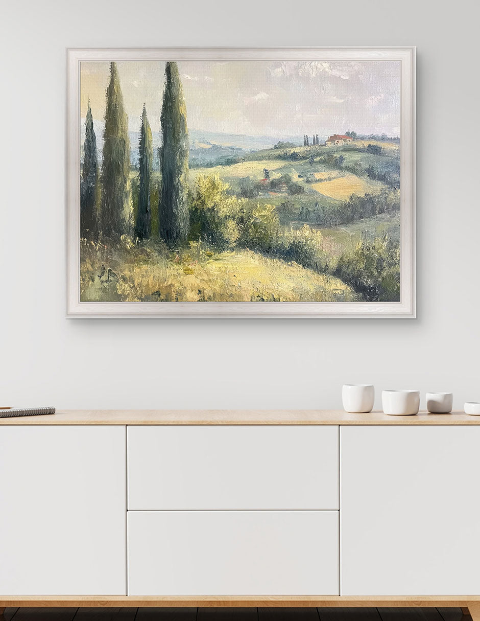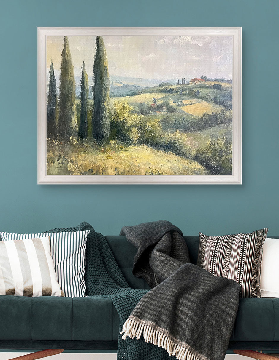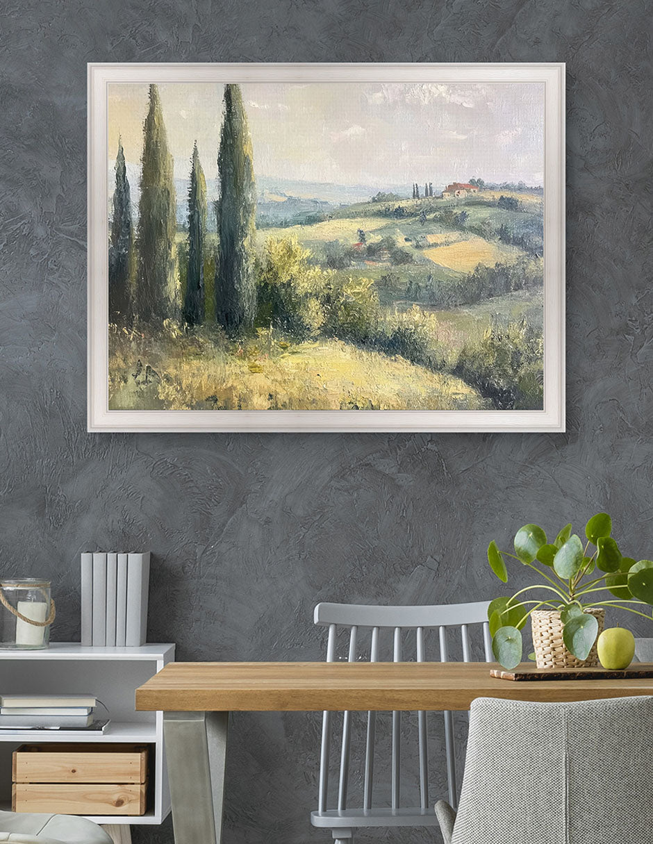 Ideal para interiores transicionales, estilo farmhouse o espacios que valoran la serenidad visual. Tierra de Colinas no representa el campo, lo respira—una pausa visual donde la tierra se convierte en refugio emocional.